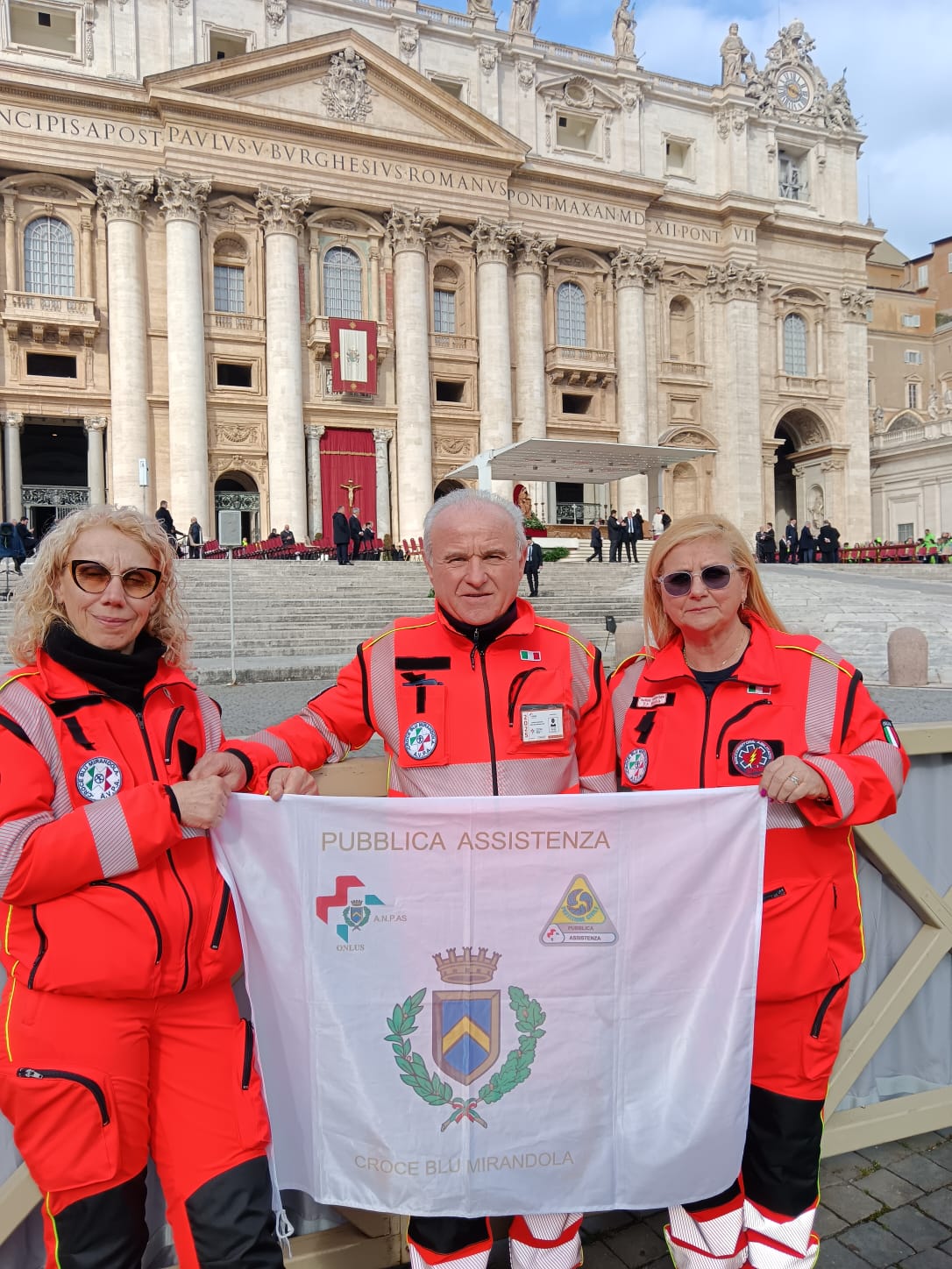 MIRANDOLA - Una delegazione di volontari e volontarie della Croce Blu di Mirandola ha partecipato lo scorso fine settimana al Giubileo del mondo del Volontariato che si è svolto a Roma. Grazie all’organizzazione curata dal Centro di Servizio per il Volontariato Terre Estensi di Modena e Ferrara, domenica 9 marzo volontari e volontarie della Croce Blu di Mirandola si sono recati in pullman in piazza San Pietro dove hanno partecipato alla Santa Messa, nella I domenica di Quaresima. La liturgia è stata presieduta dal cardinale Michael Czerny, prefetto del Dicastero per il Servizio dello Sviluppo Umano Integrale, che durante l’omelia ha letto ai più di trentamila volontari presenti le parole del Papa: «Nei deserti della povertà e della solitudine, tanti piccoli gesti di servizio gratuito fanno fiorire germogli di umanità nuova».