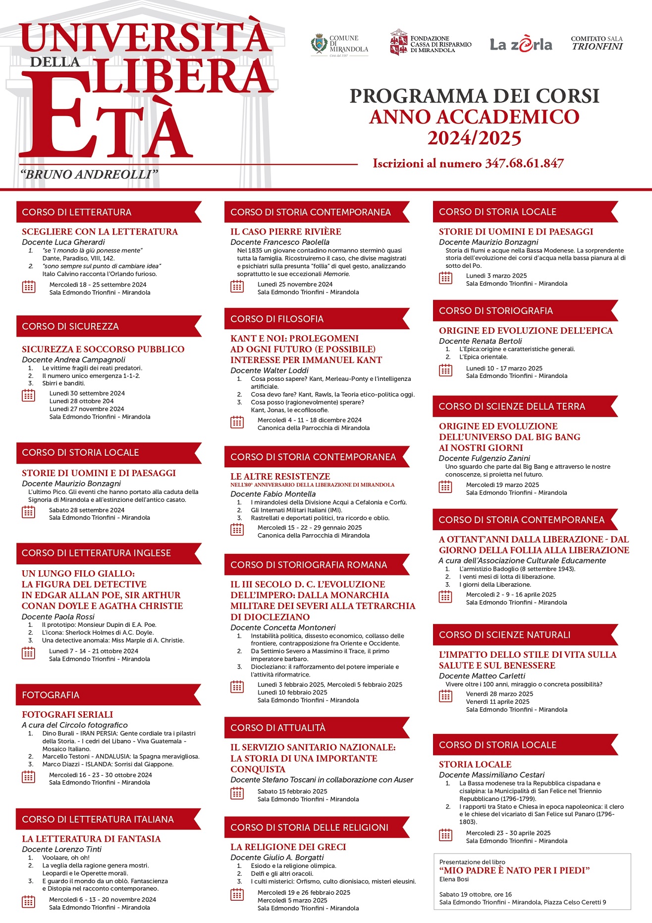MIRANDOLA - Di seguito le attività attualmente programmate presso la Sala Edmondo Trionfini (piazza Celso Ceretti 9, Mirandola):