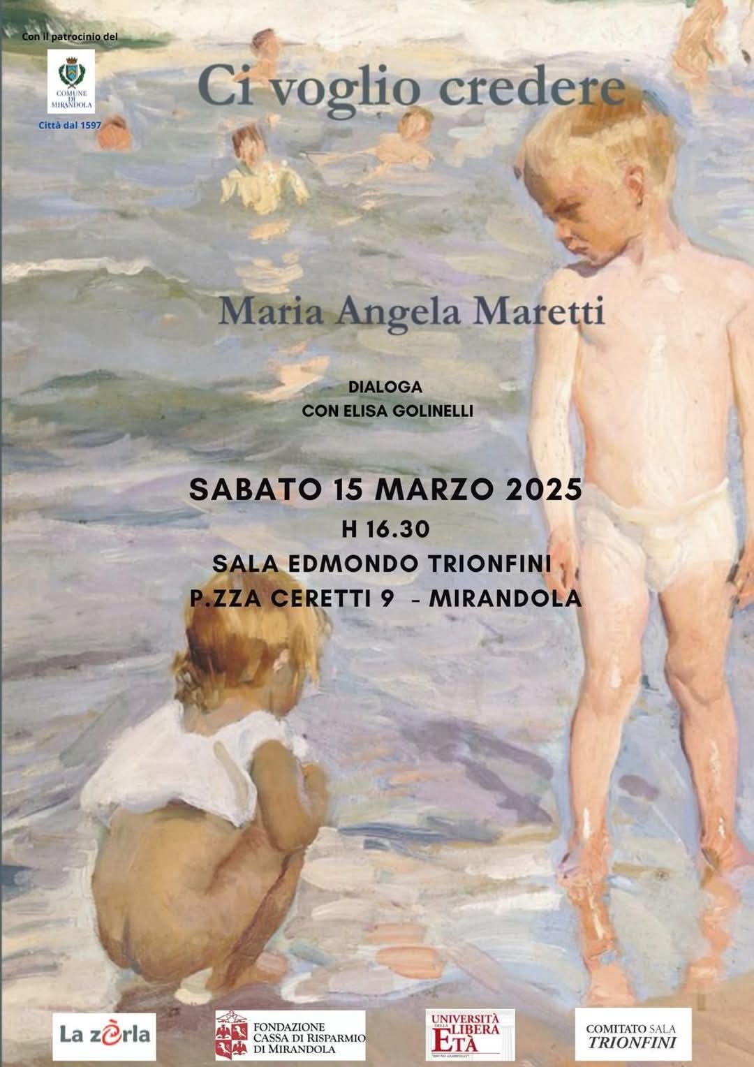 Sabato 15 marzo 2025 ore 16.30: Università libera età “Bruno Andreolli” Mirandola PRESENTAZIONE DEL LIBRO "CI VOGLIO CREDERE" di Maria Angela Maretti